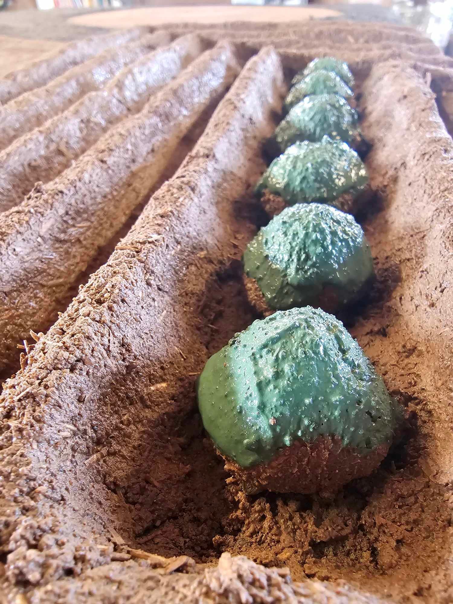 Lehmfarben und farbige Lehmputze können hier nach Lust und Laune ausprobiert werden.