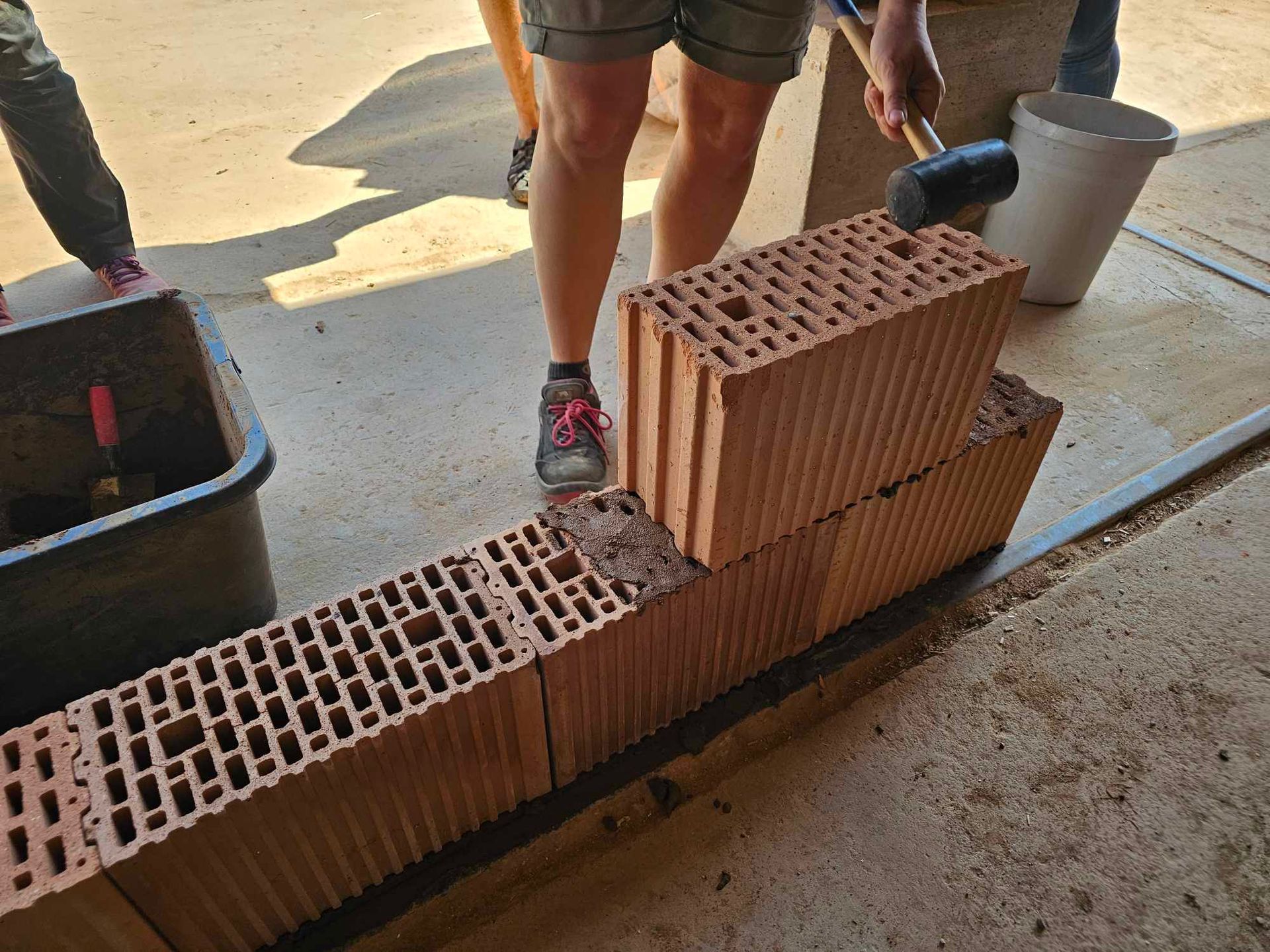Welche Möglichkeiten gibt Lehm als Mauermörtel einzusetzen vom Lehmstein, Ziegel über Holz und Glas konnten die Teilnehmerinnen und Teilnehmer alles ausprobieren.