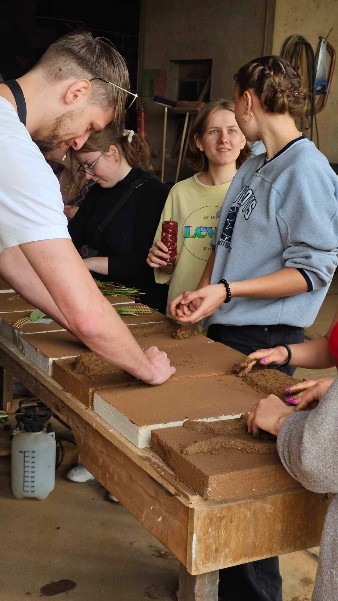Am 15.05.2024 hatten wir 25 Studenten*innen und durften einen Einblick in die Verarbeitung von Lehm am Bau gewinnen.
