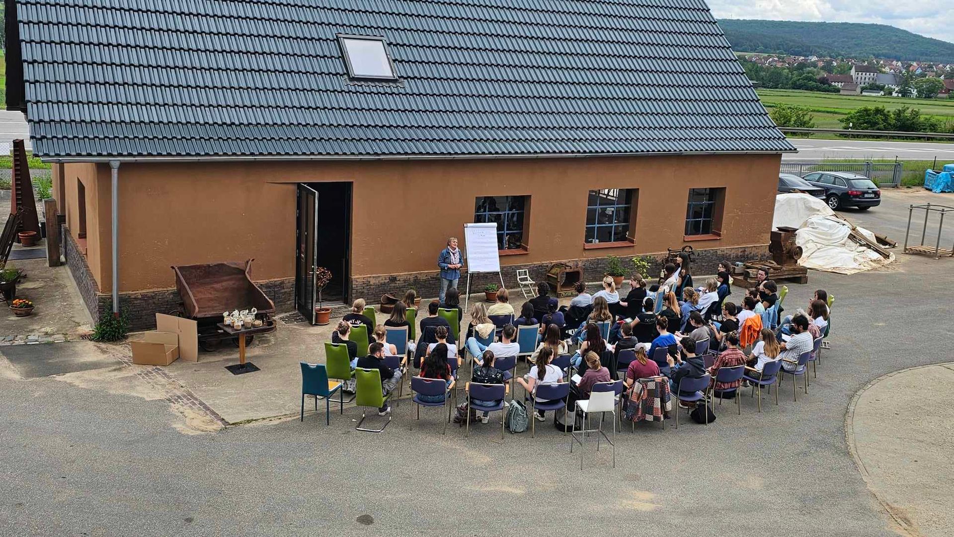 Am 28.05.2024 hatten wir Besuch von 48 Studenten*innen von der Hochschule Coburg Fakultät Design Fachrichtung Innenarchitektur mit Prof. Dipl-Ing. Katharina Bonhag-De Rosa sowie Ihrer Kollegin. Im theoretischen Teil erhielten die Studierenden einen Einblick in das große Thema Lehm. Im praktischen Teil wurden Wandbilder, Bienensteine, Kaffee-und Haselnussschalen-Putze sowie Leichtlehmschüttung ausprobiert und verarbeitet. Es war ein tolles Erlebnis. Vielen Dank
